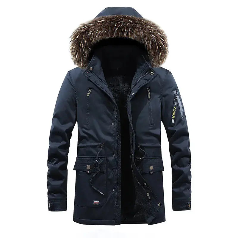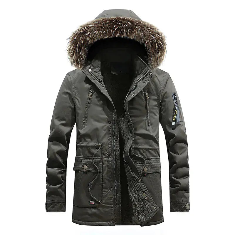Versatility is another key feature of the Men's Hooded Thick Cotton Washed Long Down Jacket. You can pair it with jeans for a casual look or wear it over dress pants for more formal events. The neutral colors available allow for easy pairing with various outfits, so you won't have to worry about matching. Therefore, it’s not just a winter coat, but a versatile piece that fits well into any man's lifestyle. Invest in this jacket, and you will enjoy its versatility throughout the season.